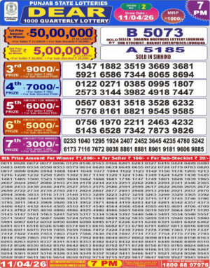 Punjab State Dear 1000 Quarterly Lottery Result Punjab State Dear 1000 Quarterly Lottery Result is scheduled to…